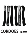 Cordões/tirantes 10 milímetros de espessura sem personalização com cores variadas, ou cordões/tirantes com impressão silk, apenas uma cor na personalização.
